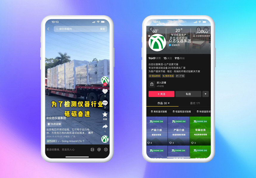 廣東眾志檢測儀器有限公司,作為在模擬環境與可靠性試驗設備領域的領軍企業,憑借其強大的研發實力、卓越的產品質量和完善的銷售服務體系,已在全球40多個國家及地區建立了廣泛的客戶群體,累積合作客戶超過30000家。為了進一步拓展新市場,特別是在當前數字化營銷風起云涌的背景下,眾志檢測儀器決定借助短視頻這一新興且高效的傳播渠道,來提升品牌知名度和市場占有率。因此,作為擁有豐富短視頻運營經驗和成功案例的老客戶推薦,眾志檢測儀器選擇了與米可網絡進行合作。